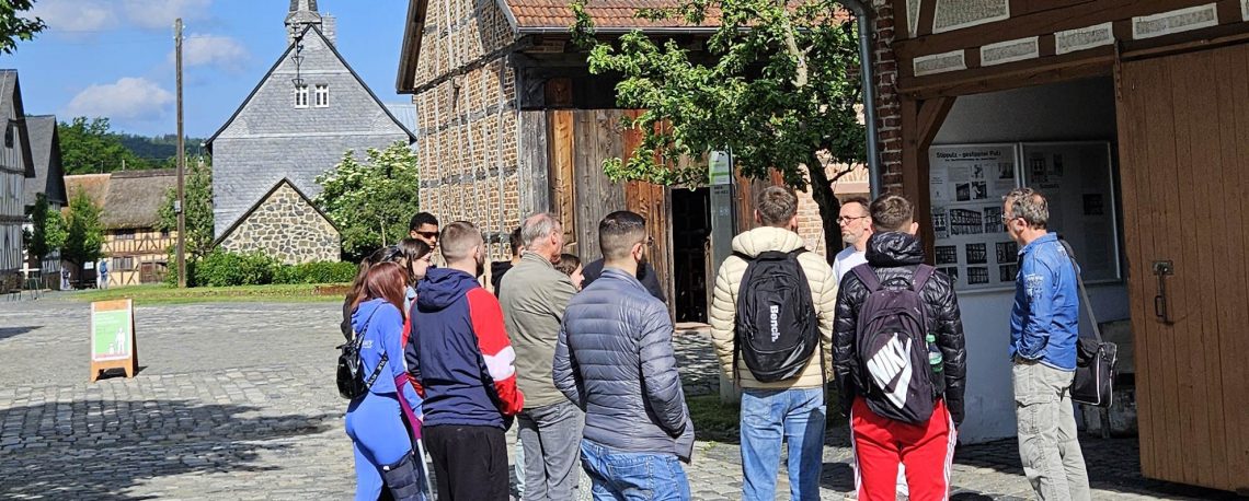 Am 23.5. besuchte die kurz von ihrer Abschlussprüfung stehende Maler- und Lackierer*innen-Klasse 12 BFM, begleitet von ihren Fachlehrkräften, den Hessenpark in Neu-Anspach.